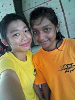 TUESDAY - woke up at 5am in the morning! it was soooo cold i was shiveringggg in my tent D: and fyi, i'm wearing my cardi man. then we had to unpitch our tent in the dark. went rock climbing. it was my first time! PS : i never climbed during the sec 2 camp, i was afraid of heights D: but ahmad told us to go on, to challenge ourselves, dey, somehow his words are sooo powerful i just thought i should give it a go man! so i went anyway, and i reached my target! :D